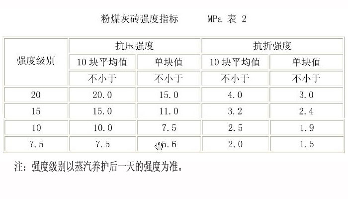 抗折強度和抗壓強度應府合下圖表的規定,優等品的強度級別應不低于15級,一等品的強度級別應不低于10級,詳見下圖: