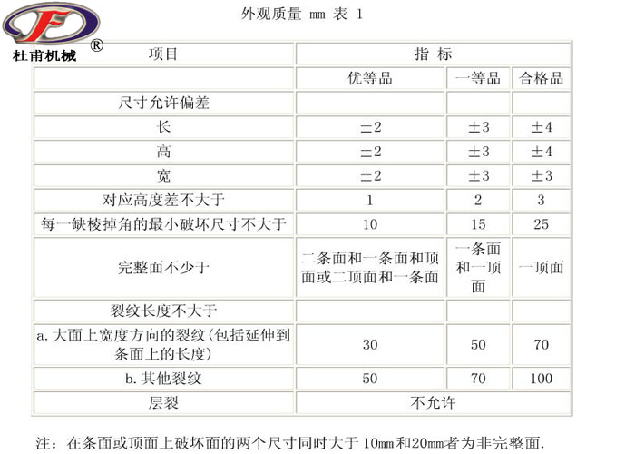 基于在墻體建筑中加氣磚自身質量的重要性,附加氣磚外觀質量表一張(如下圖所示):